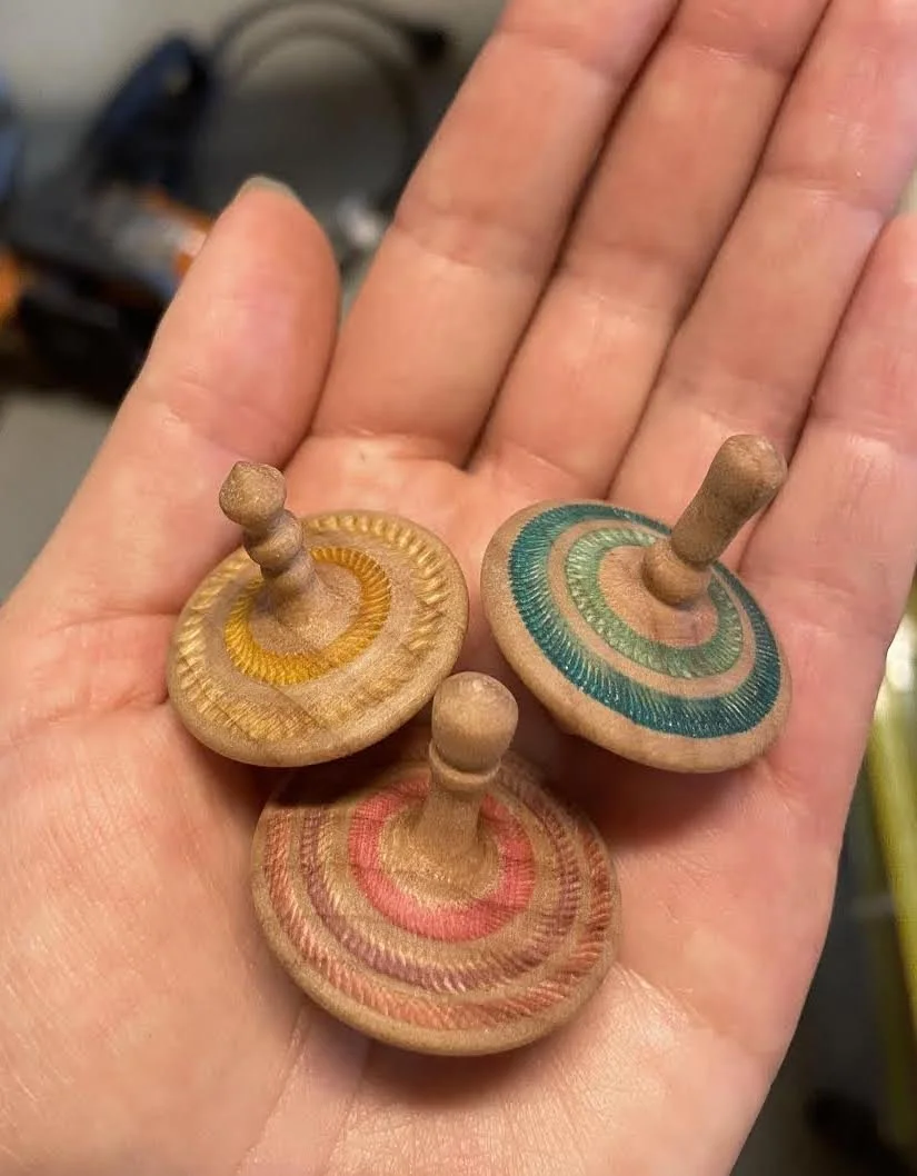 In this session, we'll use our new skills to make spinning tops. Get creative with different shapes! Add color! Feeling ambitious? Try adding a captive ring, or using a chatter tool for texture.